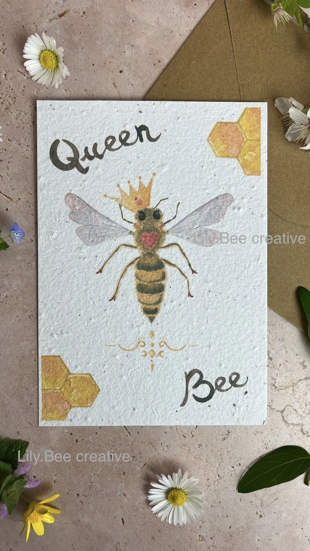 NB: Ce papier ensemencé est un papier réalisé artisanalement, il contient des aspérités dues à la présence des graines et son aspect peut légèrement varier d’une carte à l’autre.