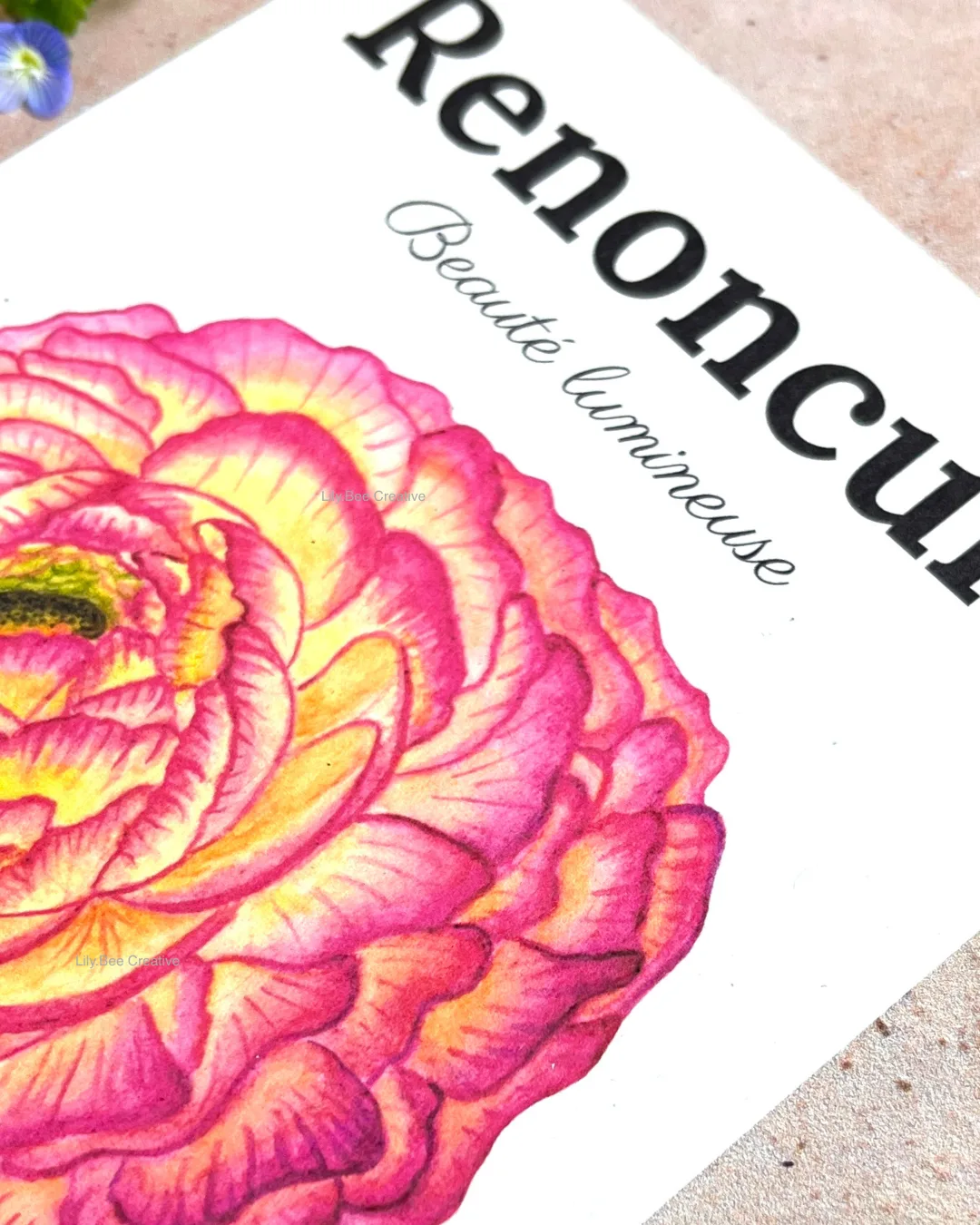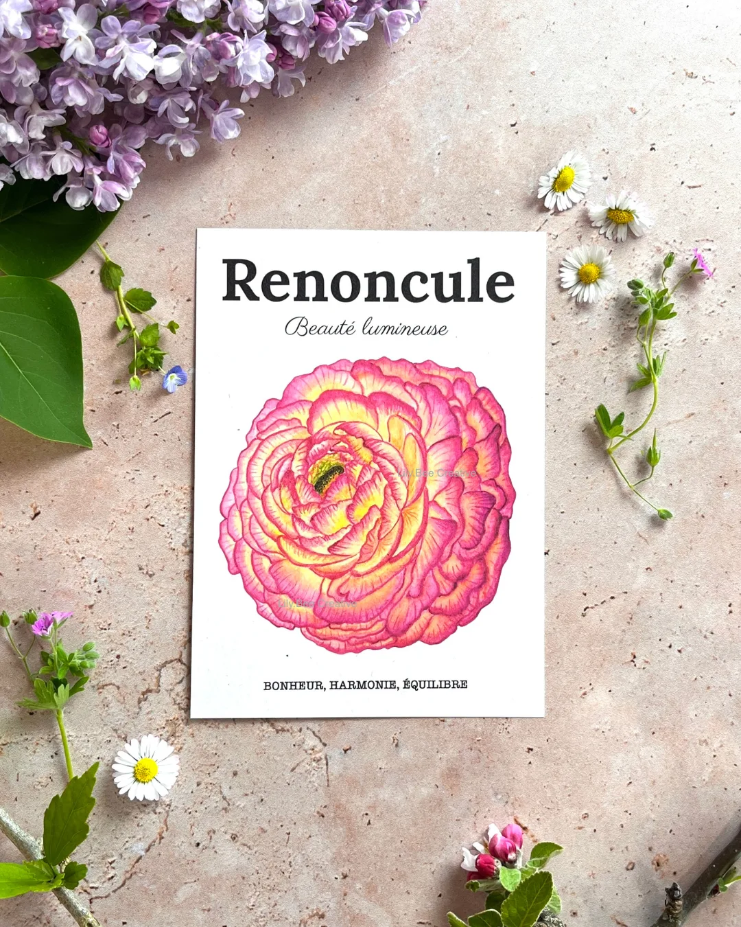 Carte botanique « Renoncule » réalisée à l’aquarelle
